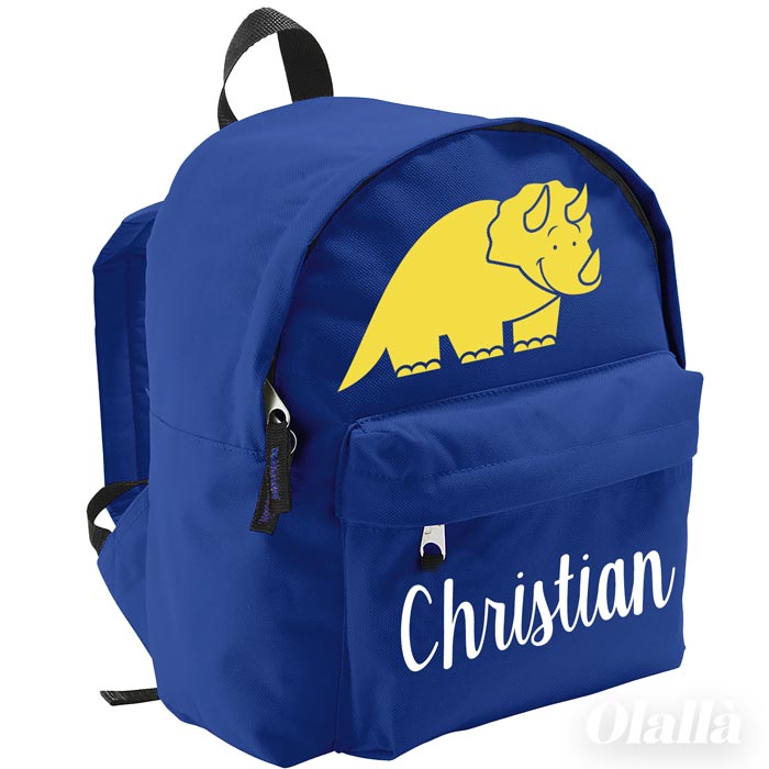 Carinissimo zainetto personalizzato con il nome del bambino ed un simpatico dinosauro. Preparati al back to school con stile! Il suo primo giorno di scuola materna o di asilo nido sarà ricco di gioia ed entusiasmo.