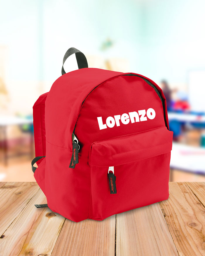Zainetto per l’asilo o la scuola personalizzato con il nome. Rendi unico il primo giorno di asilo, nido o scuola materna del tuo bimbo o bimba con questo fantastico zainetto che sfoggerà con grande orgoglio!