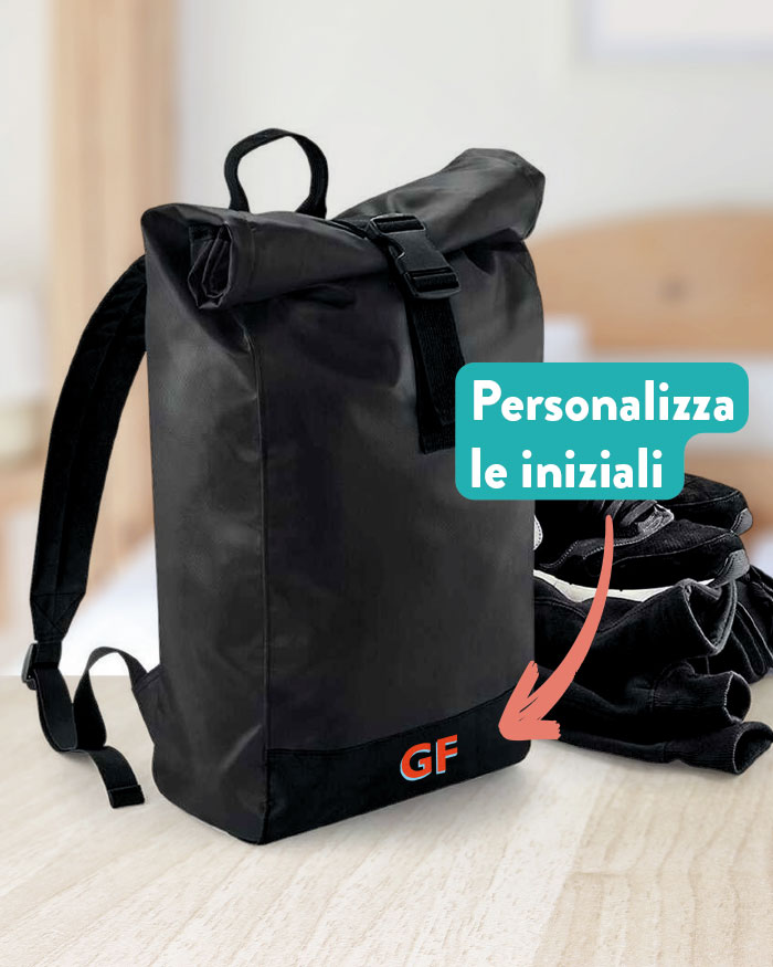 Home » Idee Regalo » Accessori » Borse Personalizzate » Zaino Impermeabile con Chiusura Roll-Top Personalizzato con Iniziali Colorate Pop – Idea Regalo Laurea Lei, Compleanno, Ideale per Chi Ama Viaggiare
