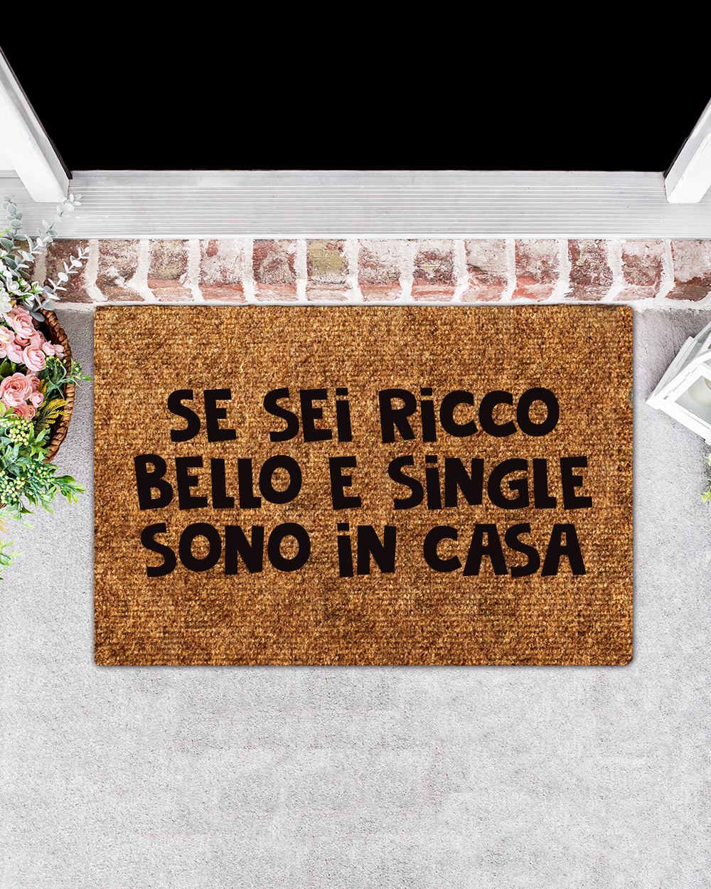 Zerbino Divertente Personalizzato con Scritte Simpatiche “Se Sei Ricco Bello e Single Sono In Casa” – Idea Regalo Divertente e Ironica per la Casa Nuova