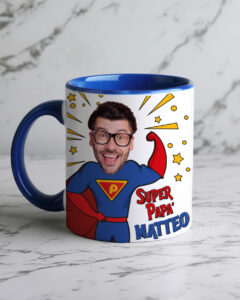 INFORMAZIONI SUL PRODOTTO Tazza mug “Super Papà” con manico e interno blu, personalizzata in stile fumetto con foto del papà, nome e dedica sul retro. ATTENZIONE: Si raccomanda di lavare a mano e di non lavare in lavastoviglie. DIMENSIONI […]