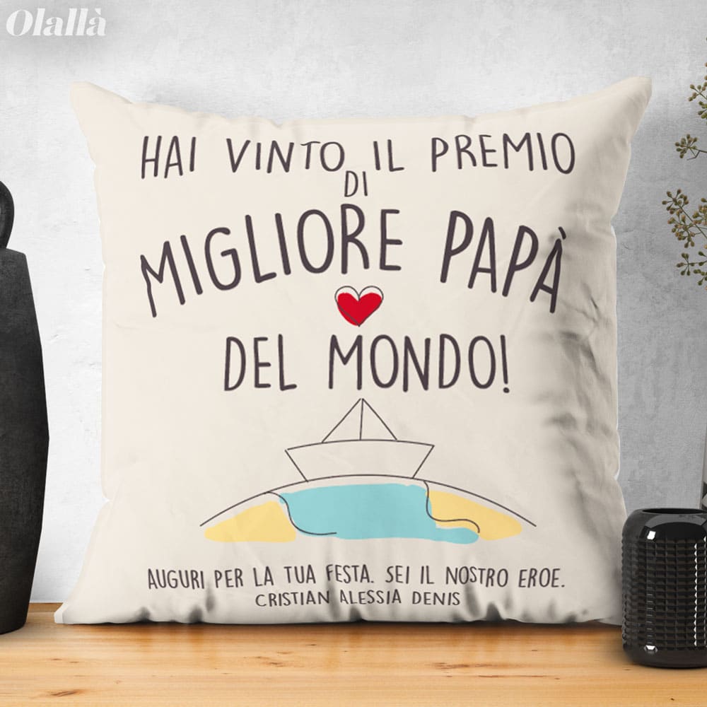 Acquista ora!Cuscino Personalizzabile “Migliore Papà del Mondo” con Barchetta – Idea Regalo Festa del Papà