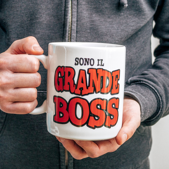 Maxi tazzona in ceramica “Sono il grande BOSS” per far colazione e iniziare la giornata con una maxi dose di autostima. Basta con i bicchierini di plastica, regalati la tua Tazza XXXL, perfetta per l’ufficio ema anche a casa, affinché tutti possano avere chiaro chi sia (molto modestamente) a comandare!