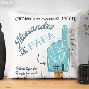 Splendido cuscino personalizzabile per il tuo super papà con il nome, la dedica e un’ulteriore frase sul retro. Un regalo bello e super originale che il 19 Marco lo emozionerà nel giorno della sua festa. Ideale anche per il suo compleanno o per qualsiasi speciale occasione.