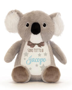 Questo adorabile peluche Koala personalizzato rappresenta un pensiero speciale e unico per occasioni memorabili. Il nome, scritto in un simpatico carattere nei toni dell’azzurro, è adornato da stelle grigie e la scritta SONO TUTTO DI Motivi per Regalarlo: Nascita […]