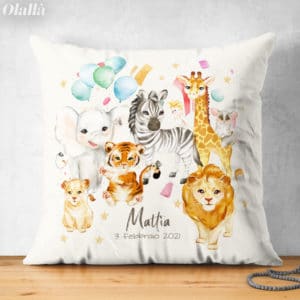 Acquista ora!Cuscino Personalizzato con Animali della Savana per Nascita o Compleanno Bambino