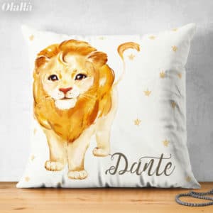 Cuscino Personalizzato con Dolce Leone e Nome del Bambino