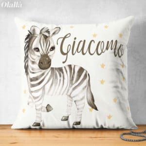 Acquista ora!Cuscino Personalizzato con Dolce Zebra e Nome del Bambino