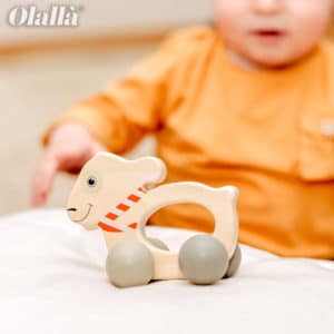 Gioco tattile in legno, lavorato in modo pregiato, comodissimo da impugnare, si può portare in giro sulle sue stabili rotelle! Varie possibilità di divertimento, che aiutano ad esercitare la motricità e promettono azione sul tappetino dei neonati. Il tattile è verniciato a prova di saliva e dunque i bambini lo possono esplorare senza problemi anche con la bocca. Un fantastico gioco per bebè, per piccoli esploratori!